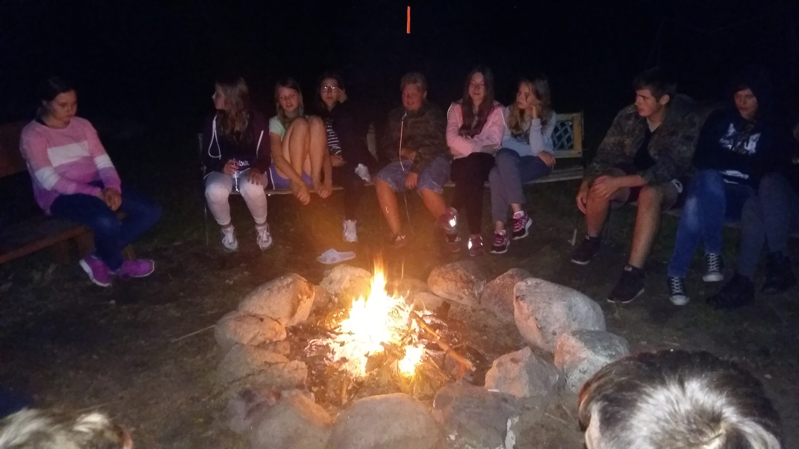 Nasza drużyna działa w trzech pionach: Zuchy, Harcerze, Harcerze Starsi oraz pion wodny czyli żeglarski. Uczestnicy biwaku jako zadanie wspólne mieli wypracować założenia dla całej drużyny, tak aby każdy miał wpływ na to co będzie się działo w najbliższym czasie. Nastąpiła burza mózgów przy wieczornym ognisku i padały różne propozycje np. wspólna wycieczka całej drużyny na Wyspę Tropikalną, organizacja zimowych ferii w Polskę, obóz wyjazdowy „Bieszczady” udział w rajdach organizowanych w edycjach ogólnopolskich. Tak minęło nam ognisko oczywiscie I część, bo w II części kolacja grzanki, kiełbaski, pieczone ziemniaki.