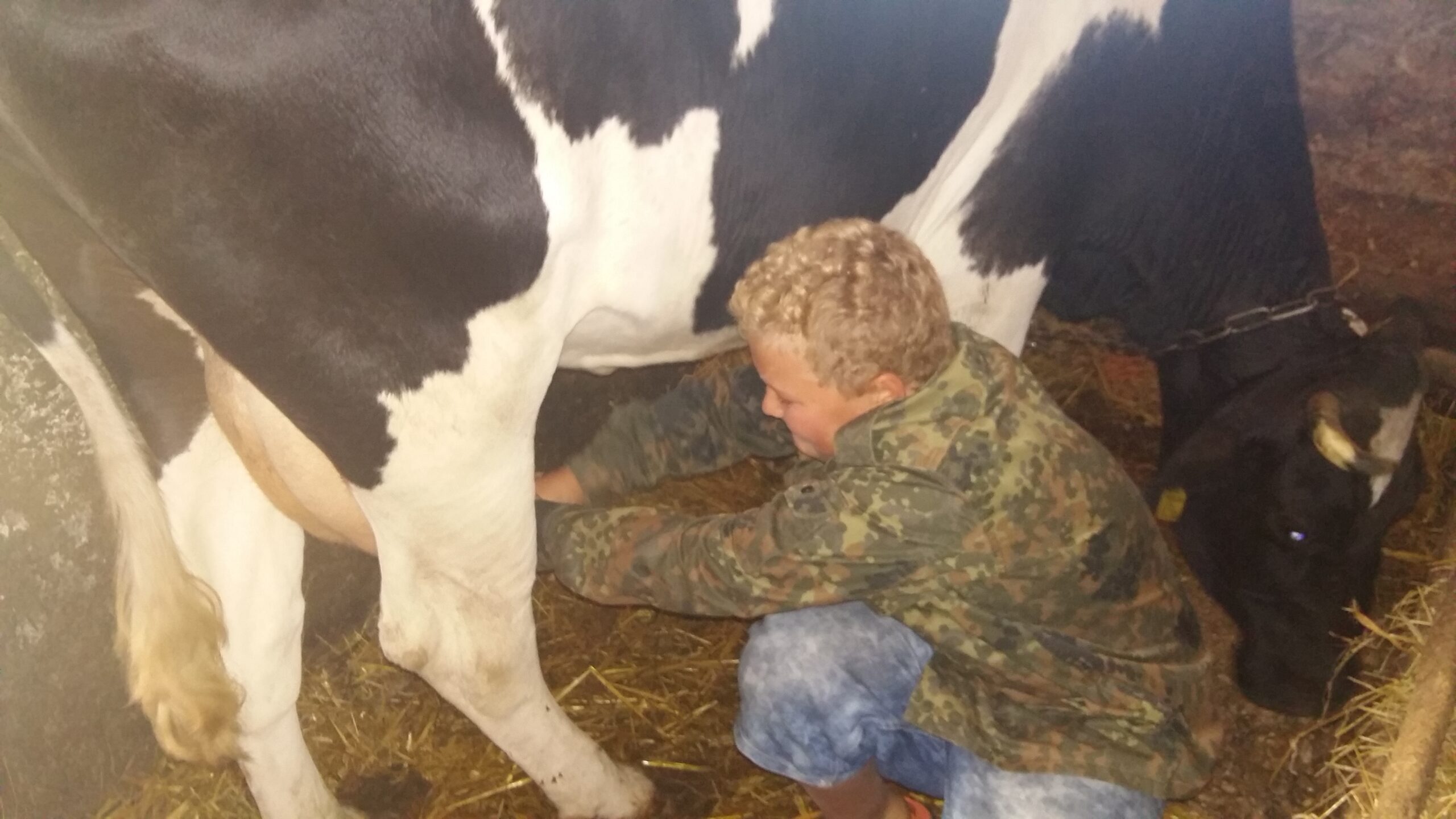 Rano silna grupa, którą zorganizował FRANEK wybrała się do gospodarza po prowiant na śniadanie: jajka, twarożek i największe wyzwanie, mleko od krowy, tylko był jeden problem, ktoś musiał się zdecydować wydoić krowę. Franek podjął wyzwanie i spisał się na medal. Będzie mleko na śniadanie. Prezentujemy na zdjęciach wyprawę do gospodarza.