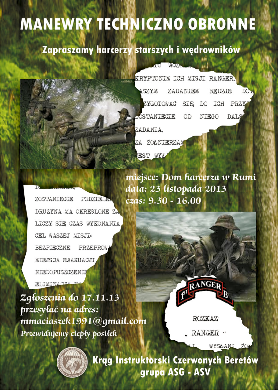 KRĄG INSTRUKTORSKI CZERWONYCH BERETÓW ZAPRASZA WSZYSTKICH HARCERZY STARSZYCH I WĘDROWNIKÓW NA MISJĘ O KRYPTONIMIE „RANGER”